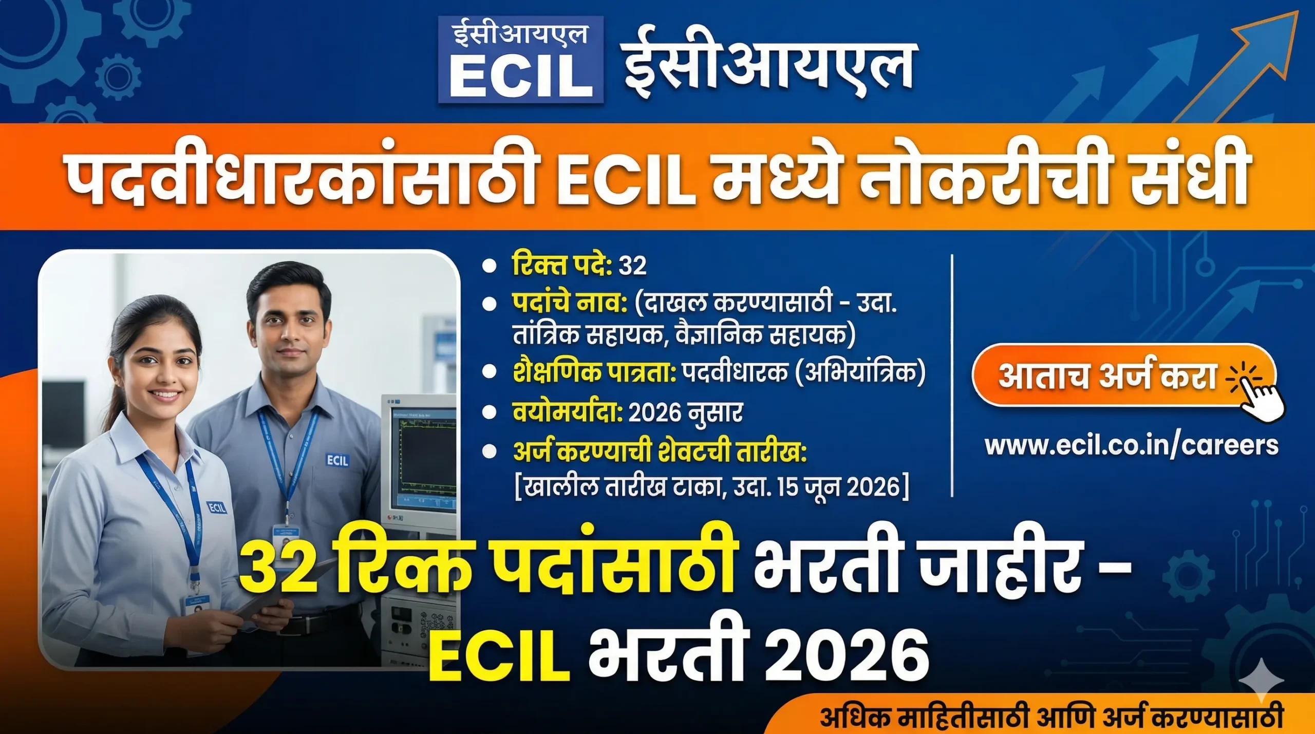 पदवीधारकांसाठी ECIL मध्ये नोकरीची संधी; 32 रिक्त पदांसाठी भरती जाहीर – ECIL भरती 2026