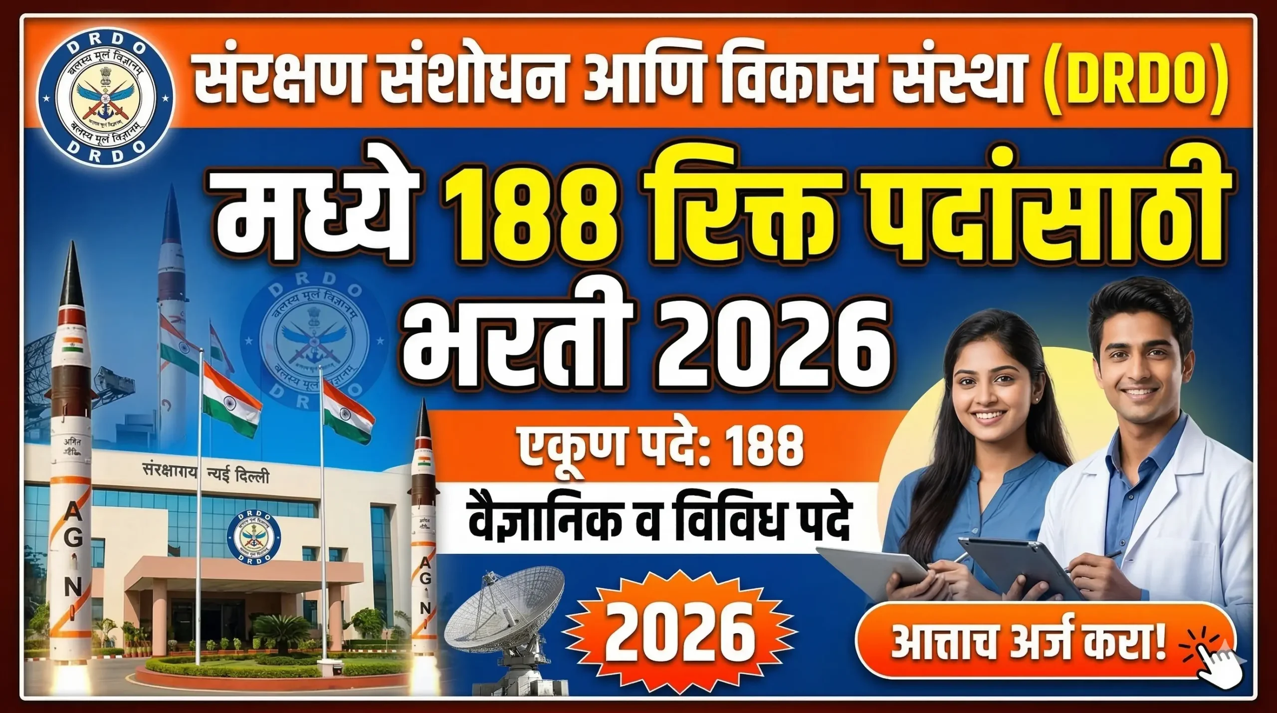ECIL भरती २०२६ इलेक्ट्रॉनिक्स कॉर्पोरेशन ऑफ इंडिया लिमिटेड (ECIL) अंतर्गत विविध पदांसाठी भरती जाहीर करण्यात आली आहे. एकूण 32 जागांसाठी पात्र उमेदवारांकडून मुलाखतीद्वारे निवड केली जाणार आहे. इच्छुक उमेदवारांनी दिलेल्या तारखेनुसार मुलाखतीसाठी उपस्थित राहावे. पदांचे तपशील पदाचे नाव – प्रकल्प अभियंता, तांत्रिक अधिकारी, सहाय्यक प्रकल्प अभियंता, वरिष्ठ कारागीरपदसंख्या – 32 जागा पदनिहाय जागा प्रकल्प अभियंता … Read more